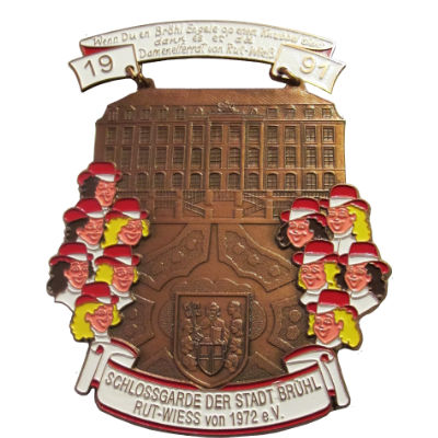 Kinder wie die Zeit vergeht. Aus einer Schnaps-Idee wurde eine aktive Truppe der Schloßgarde. Gemeint ist unser Damenelferrat, der 1991 sein 11-jähriges Bestehen feierte. Im März 1980, mit der damaligen Präsidentin Inge Zander und einer Hand voll jecker rut-wießer Wiever, aus der Taufe gehoben, waren die Damen zu einem festen Bestandteil unserer Gesellschaft geworden. Nicht nur unser “Sessionsorden 1991 “ wurde ihrem Jubiläum gewidmet, der Damenelferrat schenkte sich selbst eine Jubiläumsreise zum Oktoberfest nach München. “Jo mei – war das schön”. Dank an Ingrid Möntenich für die Organisation. Da für Karnevalisten das ganze Jahr Karneval ist, begannen wir zur Jahreshälfte mit der Veranstaltung “Tanz in den Mai”. Ein 2-Zeiler unseres Präsidenten Hans-Peter Breidenbach beschrieb die Veranstaltung im Hansa-Hotel vortrefflich: *Der Abend war herrlich, die Stimmung unübertroffen, alle Gäste waren glücklich und keiner besoffen.* Am 13. September 1991 hatten wir zum “Höhner-Konzert” ins Super-Globe (Phantasialand) eingeladen. Eine großartige und hervorragende Veranstaltung, die von der Kölner Mundart- und Gesangsgruppe mit einem Life-CD-Mitschnitt von diesem Konzert gewürdigt wurde. |